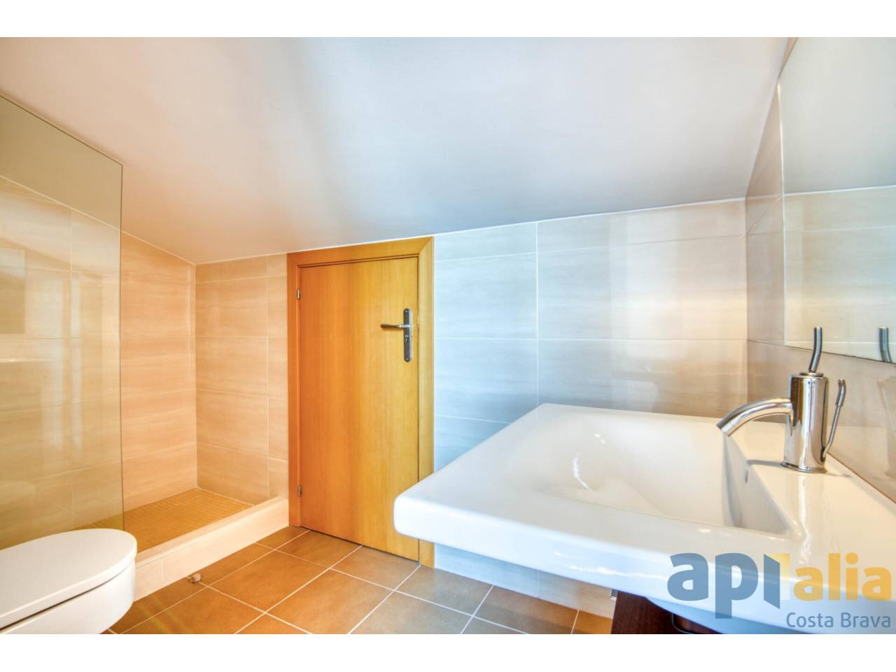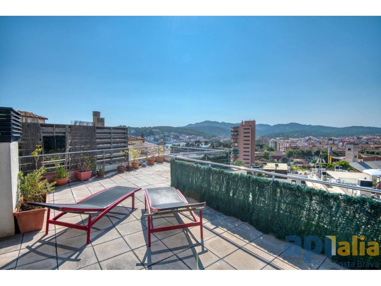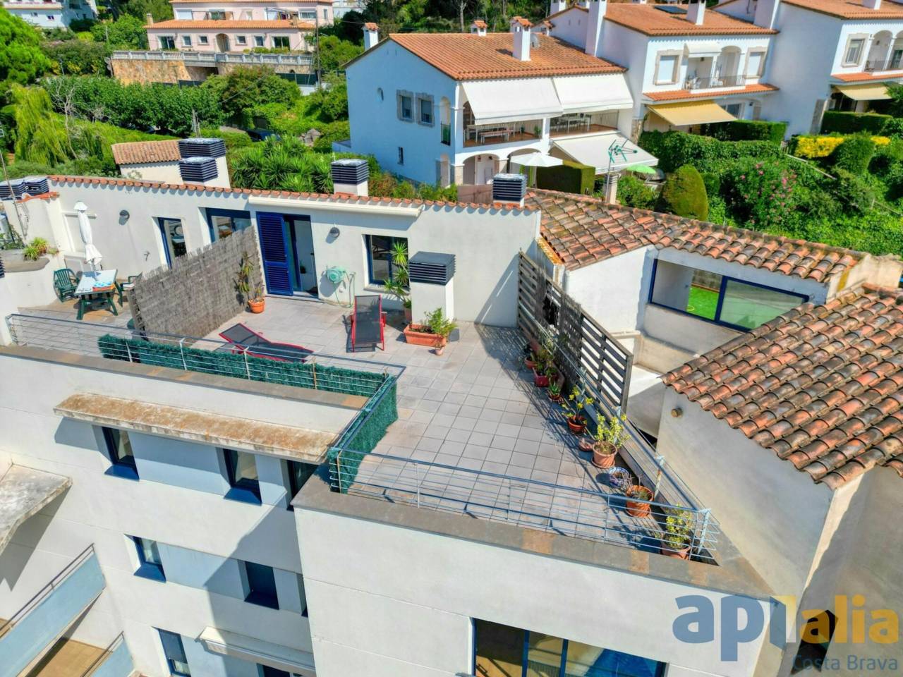EXCLUSIVA APIALIA COSTA BRAVA Descobreix aquest espectacular àtic de 93 m² construïts i 81 m² útils en una de les zones més tranquil·les i residencials de Sant Feliu de Guíxols! A només 5 minuts a peu del centre i de la platja, aquesta propietat és perfecta per a aquells que busquen comoditat i qualitat de vida. Aquest lluminós dúplex en bon estat de conservació es distribueix de la següent manera: a la planta principal, trobaràs un ampli saló menjador ple de llum natural, una cuina moderna, dos banys complets i dues habitacions dobles amb armaris encastats (una en suite). A més, compta amb un balcó amb vistes a la piscina, ideal per relaxar-te i gaudir de l’entorn. A la planta superior, hi ha una encantadora habitació golfes amb un bany addicional i accés directe a una terrassa solàrium de 50 m² des d’on podràs admirar vistes obertes i clares del mar. El habitatge disposa de calefacció de gas i aire condicionat per al teu màxim confort. Situada en un edifici amb ascensor, es troba en perfecte estat, llesta per entrar a viure. La comunitat compta amb una piscina perfecta per als dies d’estiu i un ambient veïnal molt agradable, ideal com a primera o segona residència. Opcionalment, pots adquirir una àmplia plaça d’aparcament amb traster per 30.000 €, facilitant encara més la teva comoditat. No perdis l’oportunitat de viure en un lloc privilegiat amb totes les comoditats!