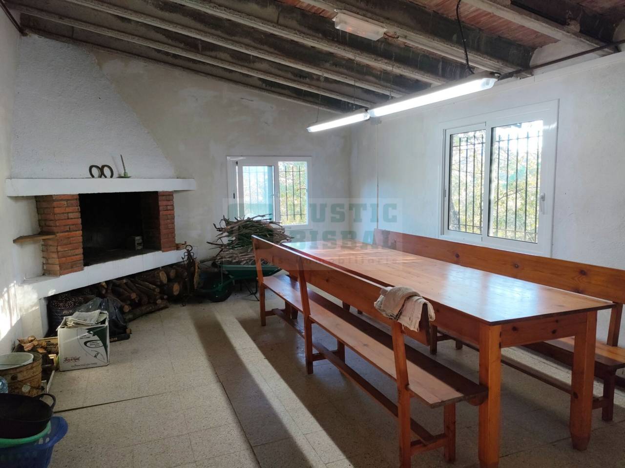 La propietat inclou una construcció agrària (barraca) d’uns 59 m², perfectament integrada en el seu entorn. Al seu interior trobem una àmplia i diàfana estança equipada amb xemeneia, cuina i una gran taula, ideal per a reunions i àpats. L’espai destaca per la seva lluminositat gràcies a les seves finestres d’alumini amb doble vidre i reixes de protecció. La construcció es completa amb un lavabo i una habitació traster, proporcionant funcionalitat i comoditat.