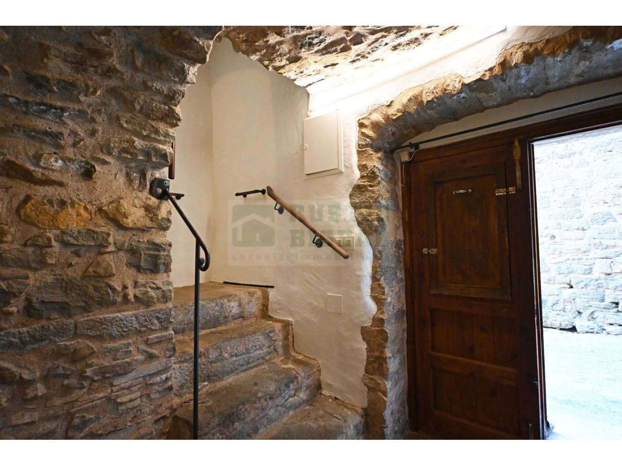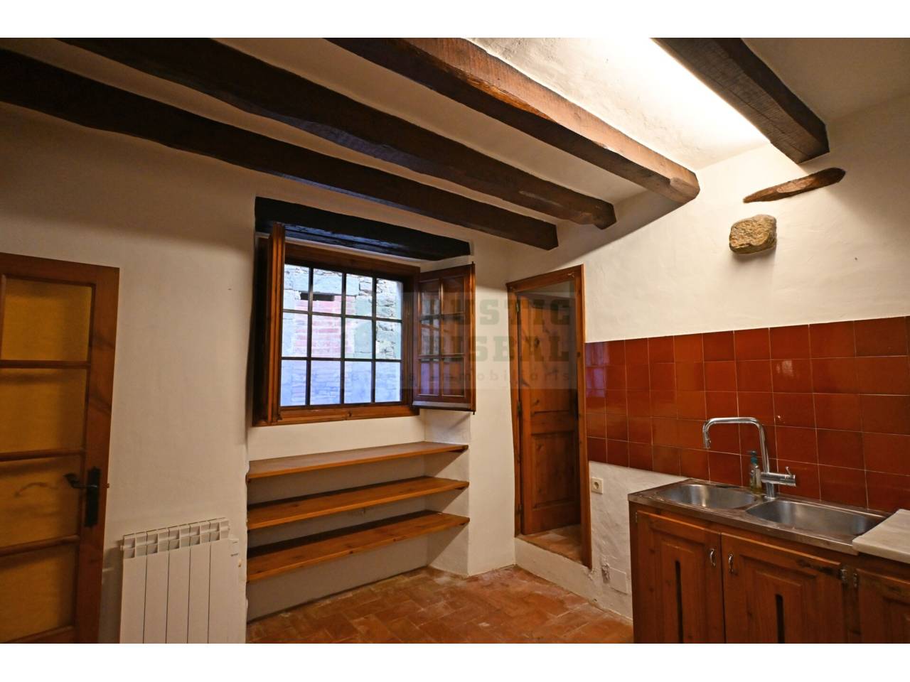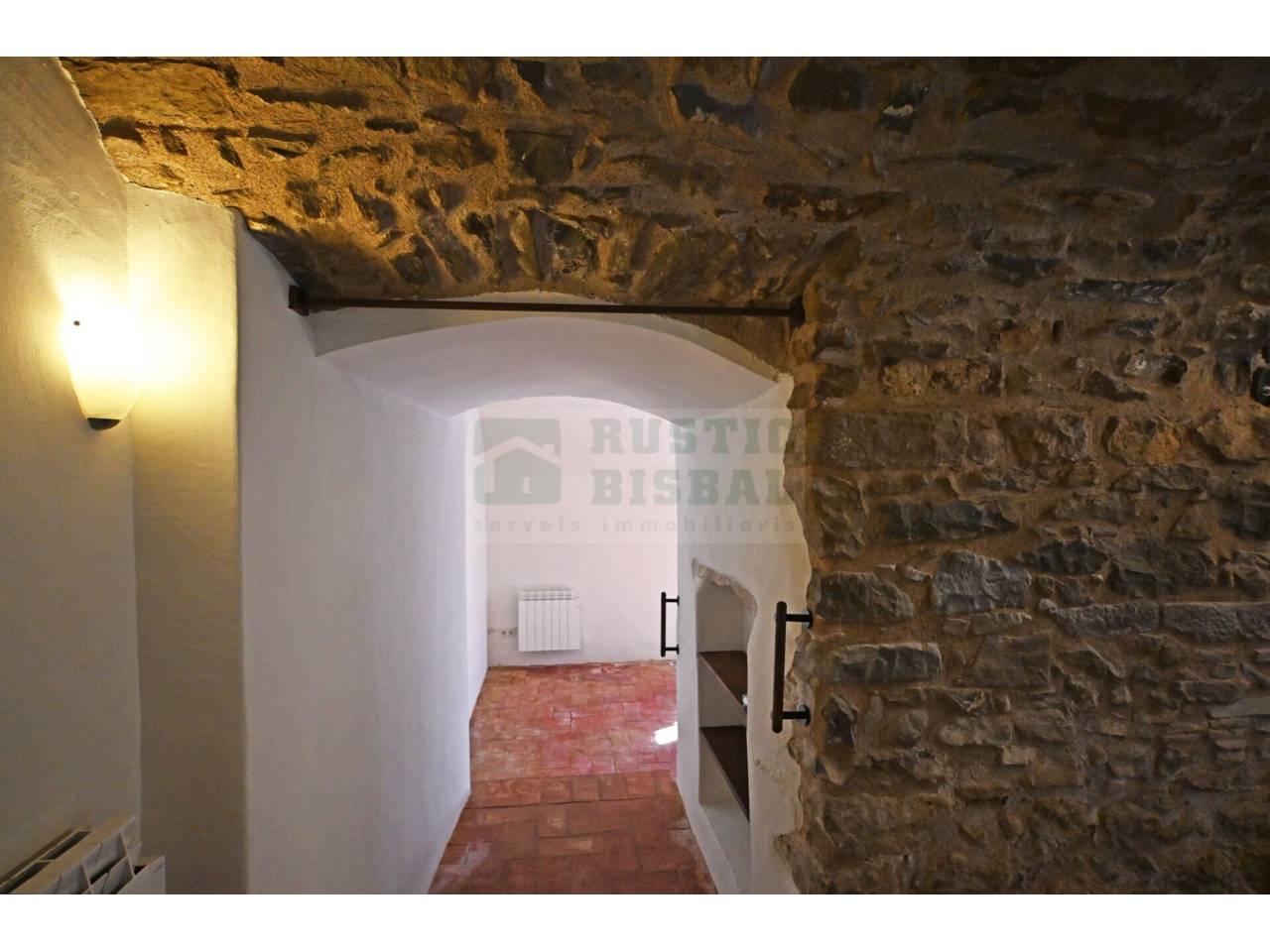AUTHENTIQUE MAISON RUSTIQUE À COLOMERS, BAIX EMPORDÀ. TRADITION ET CONFORT AVEC UNE GRANDE TERRASSE. UNE PROPRIÉTÉ EXCLUSIVE DE RUSTIC BISBAL. Dans le centre pittoresque du village, se trouve cette maison rustique de 150 m², restaurée en conservant son essence originale. Ses matériaux nobles, tels que les sols de toba catalane, les plafonds voûtés avec poutres et solives, et l’impressionnant arc de pierre à l’entrée, évoquent le caractère et l’authenticité.