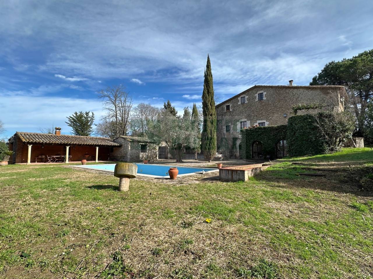 À VENDRE MAGNIFIQUE PROPRIÉTÉ AVEC JARDIN, PISCINE ET MAISON D’HÔTES PRÈS DE GIRONA, EMPORDÀ ET COSTA BRAVA. Nous présentons cette majestueuse maison de maître située dans le paisible noyau de Sant Joan de Mollet, une propriété singulière qui allie le caractère de l’architecture traditionnelle catalane avec de grands espaces et un environnement privilégié.