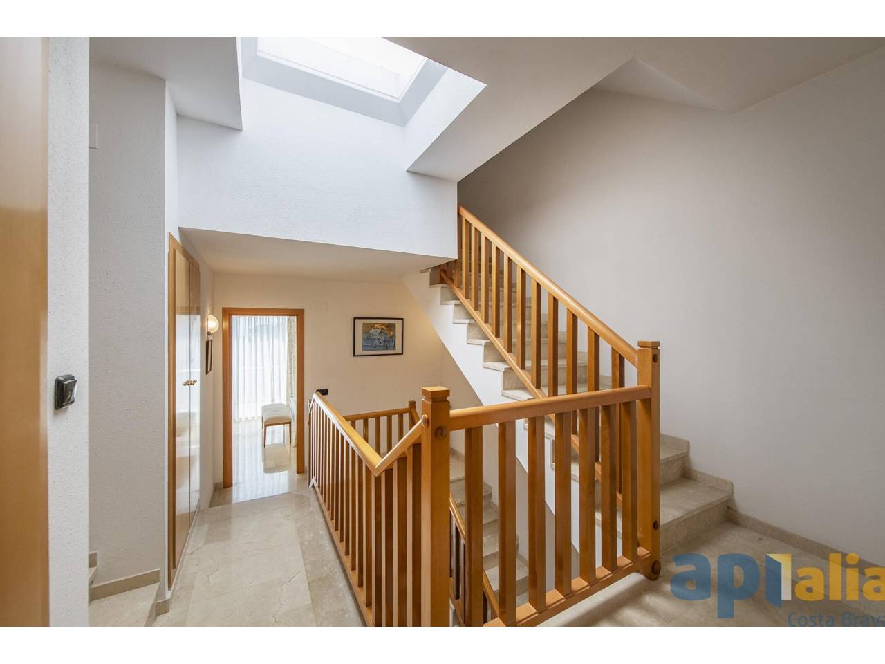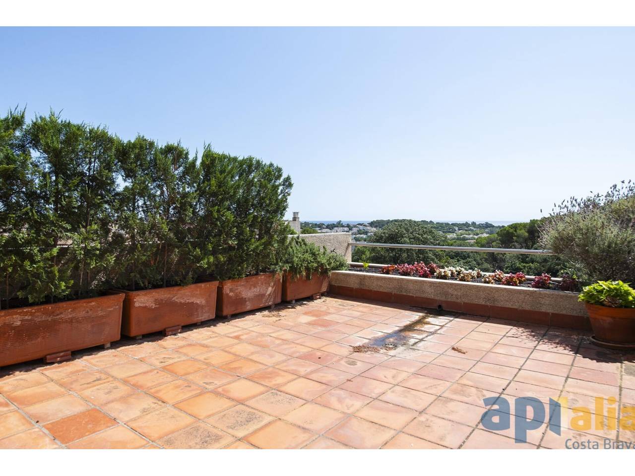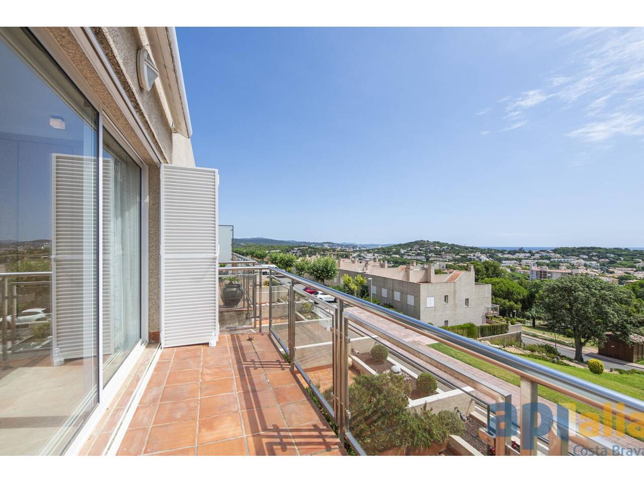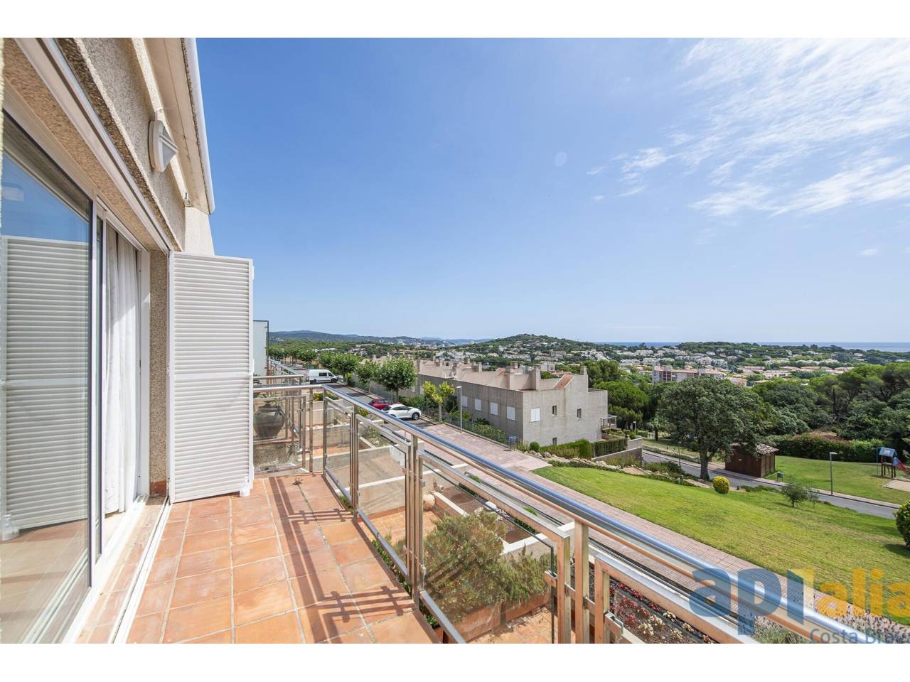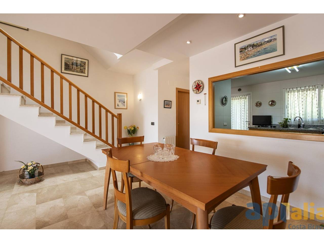 Exclusiva Apialia Costa Brava. Ubicada en una tranquila comunidad de propietarios con piscina y amplia zona verde, esta encantadora casa adosada ofrece todo lo que necesitas para disfrutar del mejor estilo de vida en la Costa Brava. Ubicada en el encantador complejo residencial llamado El Mirador, La planta baja, sólo entrando en la finca, encontramos un garaje cerrado, ideal para guardar cualquier vehículo o como trastero. Accediendo a la planta principal a través de unas escaleras exteriores, encontramos el salón-comedor, que es muy luminoso y acogedor y da acceso a una gran terraza desde donde se pueden contemplar unas vistas impresionantes a la bahía de S’agaró. También en la planta principal encontramos la cocina, muy espaciosa y con salida directa a una agradable terraza, perfecta para comidas al aire libre. En la primera planta encontramos tres habitaciones, una de ellas tipo suite, ideal para garantizar comodidad y privacidad. Aparte de esto, la casa se completa con tres baños y una terraza en la planta superior de la finca, donde se pueden contemplar unas vistas magníficas de la zona. La casa está en una zona muy tranquila, ideal tanto para residencia habitual como para segunda residencia. Una oportunidad única para vivir rodeado de naturaleza, tranquilidad y belleza mediterránea.