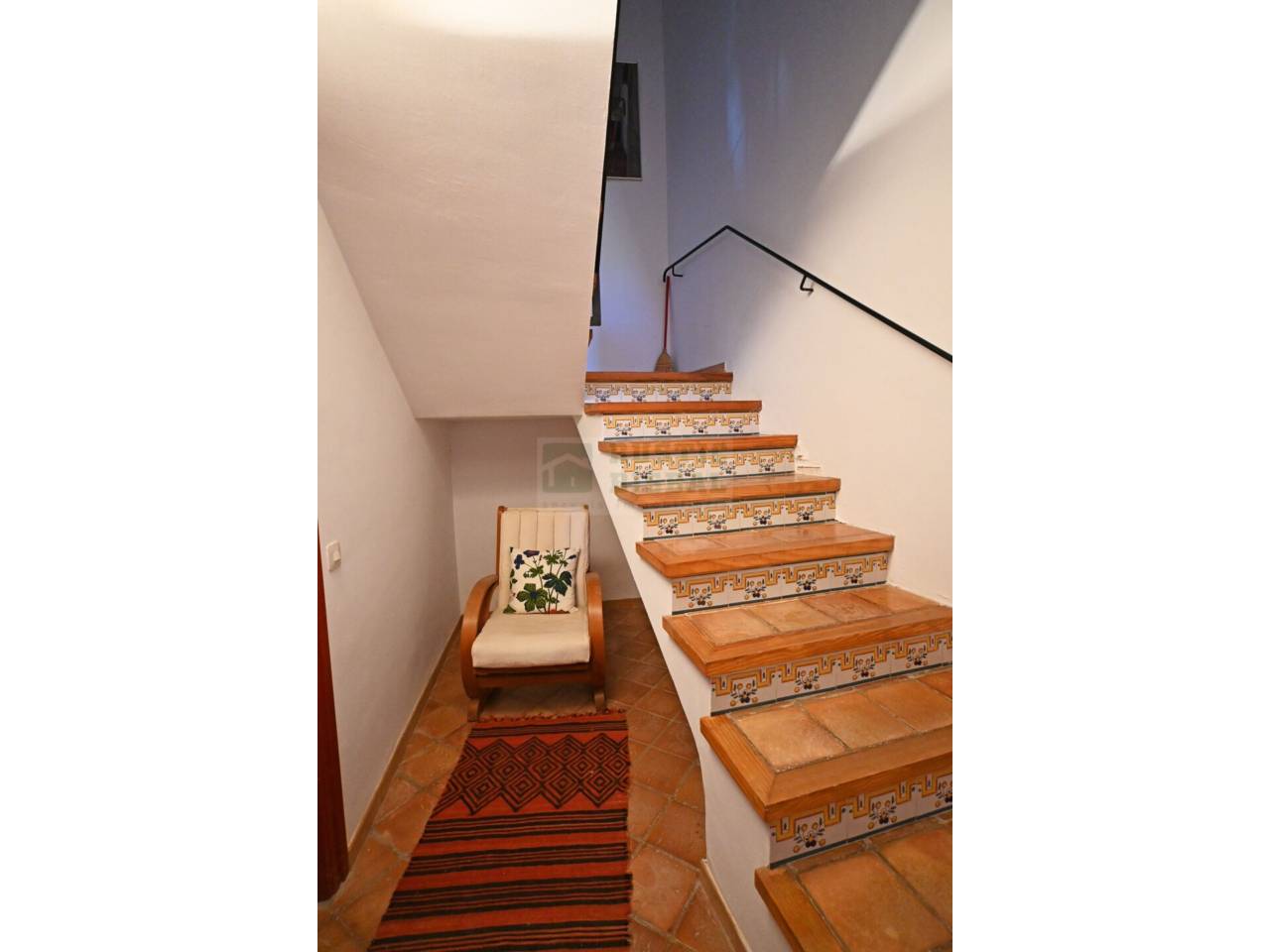 En la primera planta nos recibe pequeño distribuidor con aseo de cortesía y una gran estancia abierta que integra sala de estar, comedor y cocina. Un espacio único y lleno de personalidad, inundado de luz natural gracias a sus balcones dobles y realzado por los detalles rústicos: losas de terracota artesanales, techos de bovedilla y vigas y una estufa de leña que aporta calidez en los meses de invierno. Desde aquí accedemos a una amplia terraza privada, perfecta para disfrutar del aire libre en un ambiente íntimo y relajado.
